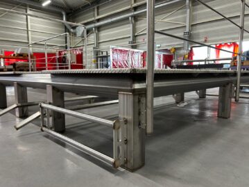 In de voedingsmiddelenindustrie is hygiëne geen wens, maar een absolute eis. Wanneer machines worden geplaatst in ruimtes waar voedsel wordt verwerkt, vraagt dat om een andere manier van bouwen. Materialen, vormen én afwerkingen moeten voldoen aan strenge hygiënische normen. Voor Bos Machinebouw uit Urk realiseerden we een RVS-bordes dat perfect aansluit bij die eisen. Twee stuks zijn nog in productie.